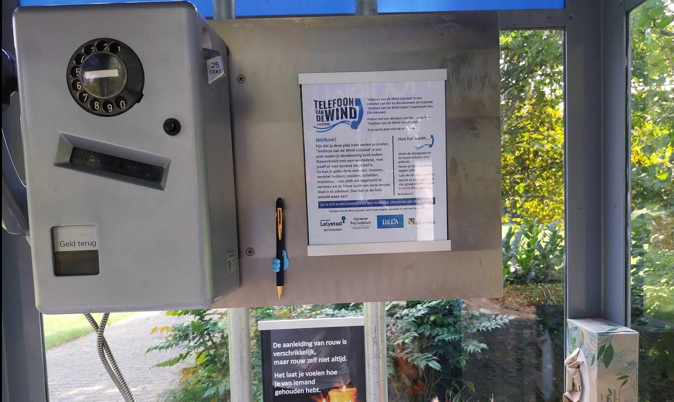 Op de algemene begraafplaats in Lelystad is afgelopen weekend een gerestaureerde telefooncel geopend waarin je denkbeeldig kunt bellen met een overledene. Het spreken aan de telefoon, ook al is die niet verbonden, dwingt je je gedachten te ordenen en ze onder woorden te brengen. Gerja Wolf belt in de Avond van 5 met Ger Koreman, initiatiefnemer van de Telefoon van de Wind in Lelystad.