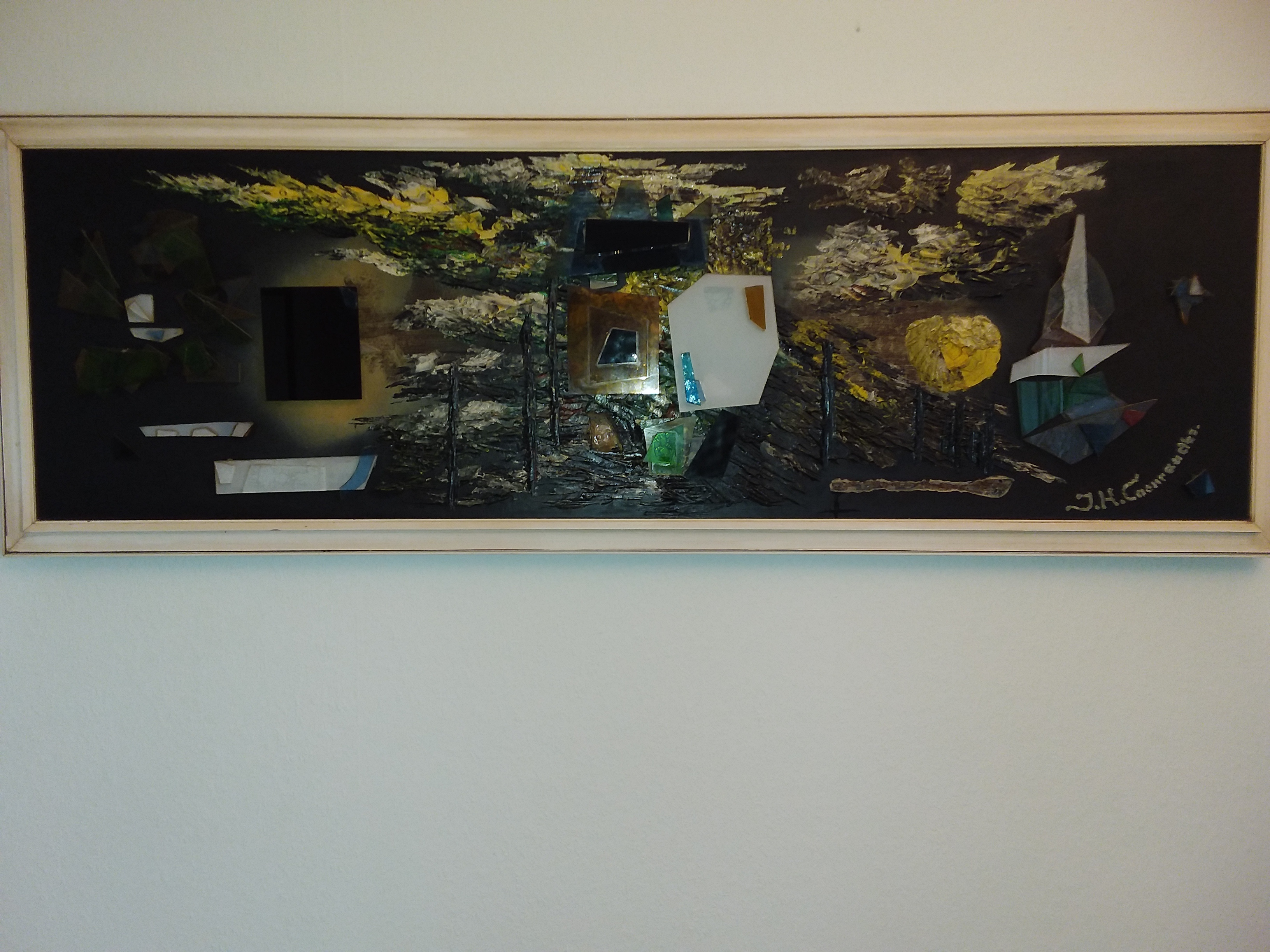 Dick en Jan werken zo'n vijf jaar samen op de Van de Leeuwschool. "In die periode ben ik ook getrouwd. Voor ons huwelijk kregen we van Jan een schilderij cadeau. Dat was zó bijzonder. Hij had er stukjes glas op geplakt, van glas in lood dat hij ergens vandaan had gehaald, volgens mij van een gesloopt strandhuisje. Hij kon dat soort materialen echt een tweede leven geven. Hij was zo'n creatief type!"