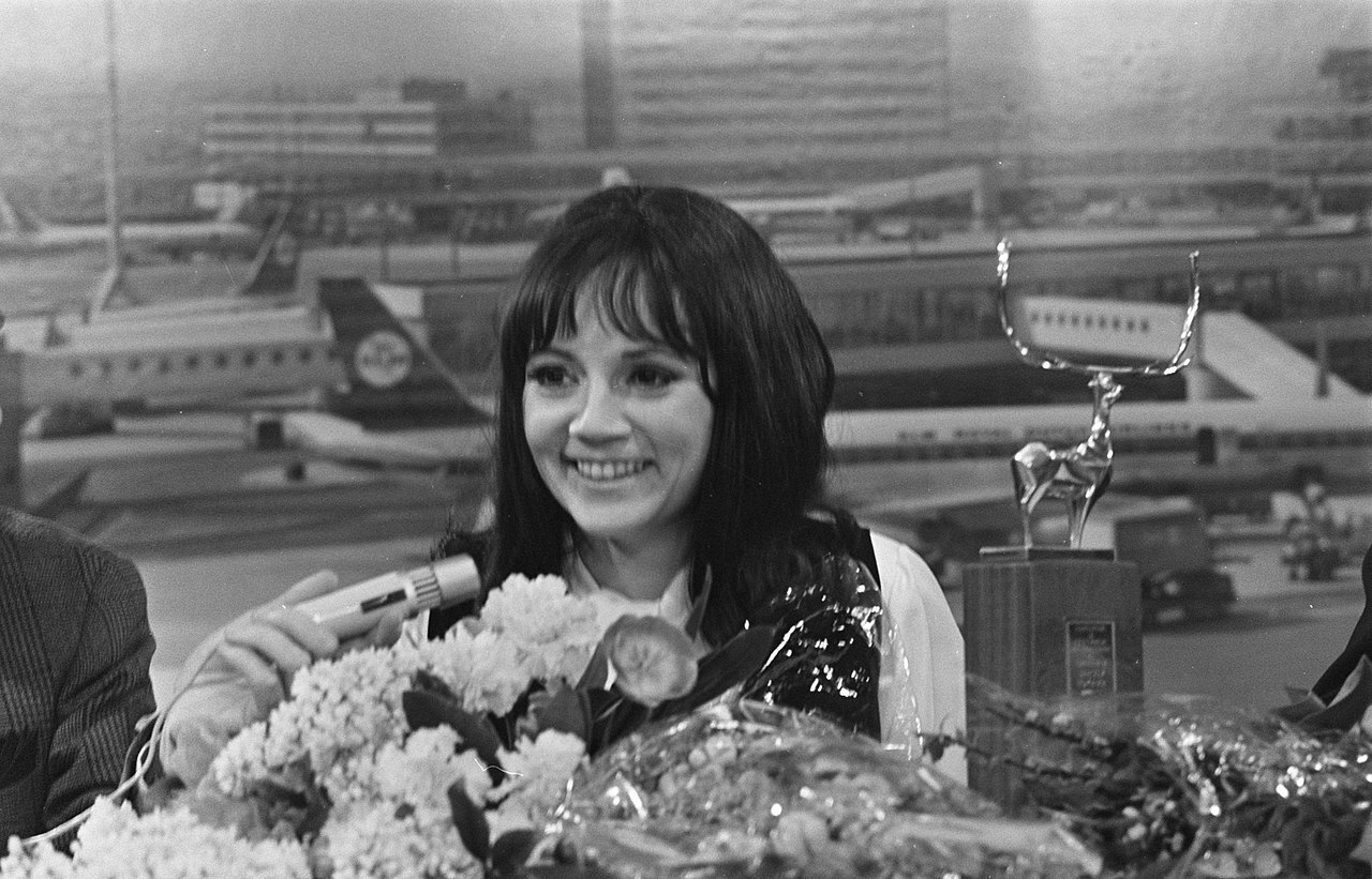 Zangeres Thérèse Steinmetz arriveert op Schiphol na "Het Gouden Hert " in Roemenië gewonnen te hebben Datum : 9 maart 1970 Locatie : Noord-Holland, Schiphol