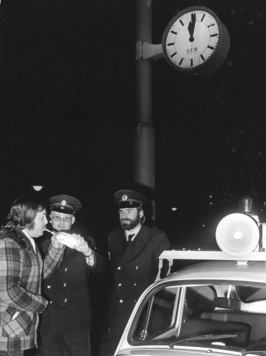 Het is 31 oktober 1974 en dat betekent dat het morgen 1 november 1974 is. En vanaf morgen draagt de Nederlandse politieagent naast de gummiknuppel, fluitje en pistool ook standaard een alcoholtest bij zicht!