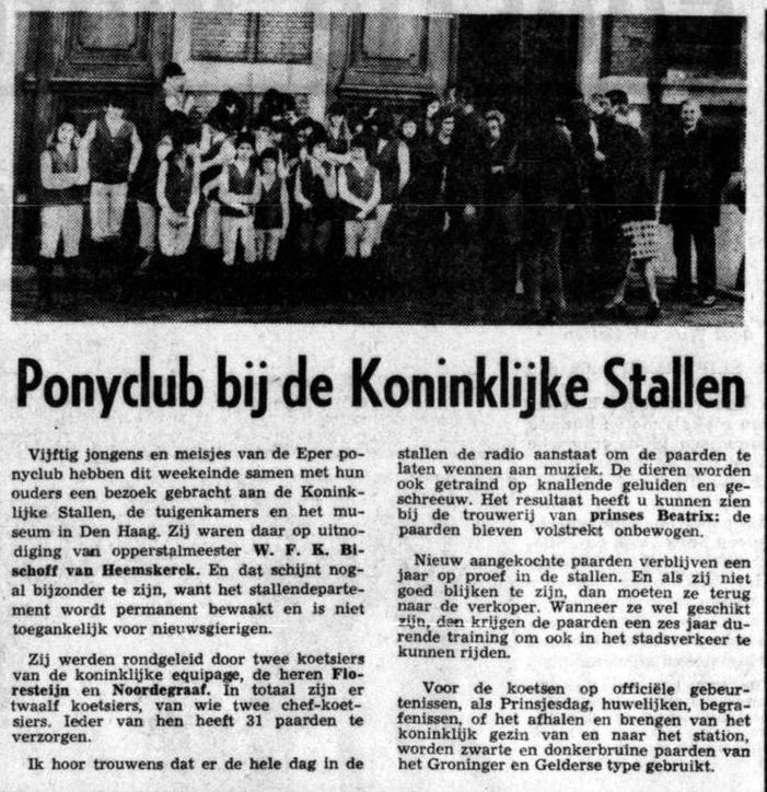 Heb jij ook altijd al het paard van de koningin willen ontmoeten? Voor vijftig jongens en meisjes van de Eper pony-club kwam deze droom uit! Zij mochten een bezoek brengen aan de koninklijke Stallen in Den Haag. En dat is heel bijzonder, want de stallen zijn normaliter helemaal niet toegankelijk voor pottenkijkers.