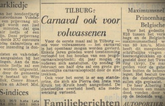 Carnaval in Tilburg was pas in 1965 'legaal' (Algemeen Handelsblad, 27-02-1965)