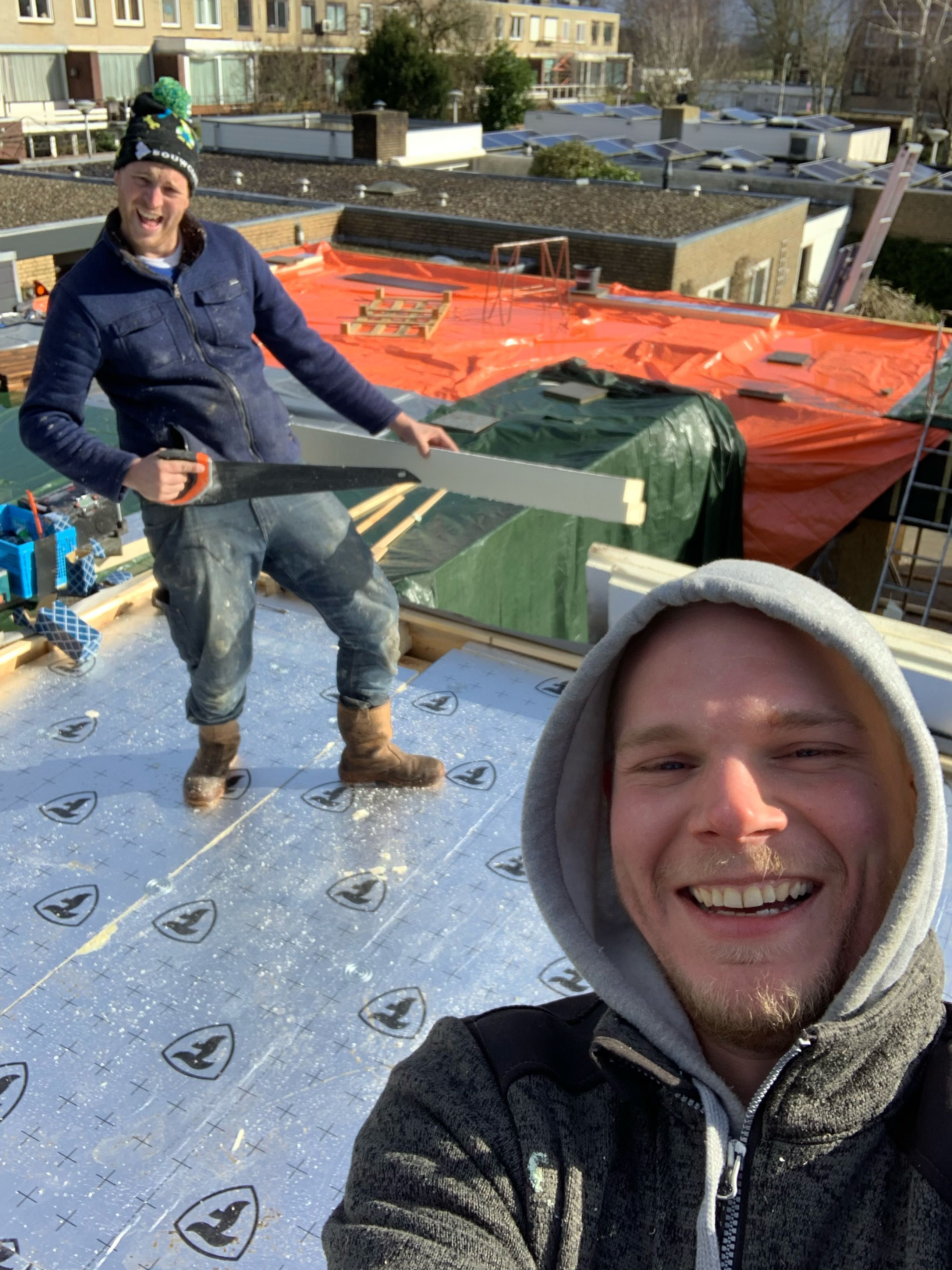De foto is ingestuurd door timmerman Michel vanuit Amstelveen. Samen met zijn collega Joost is hij bezig met het installeren van een dak. Van harte gefeliciteerd met je DAB+ Radio!